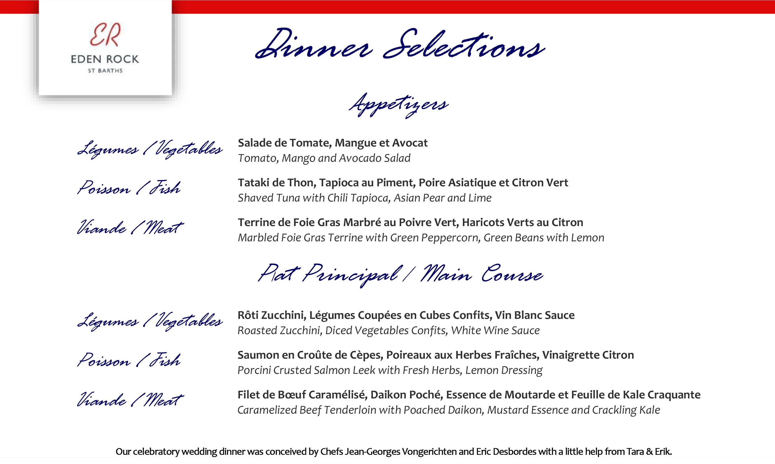 Thank you!! All dinner selections were made in a timely fashion . Following cocktails and hors d'oeuvre, a three-course sit-down dinner will be served.